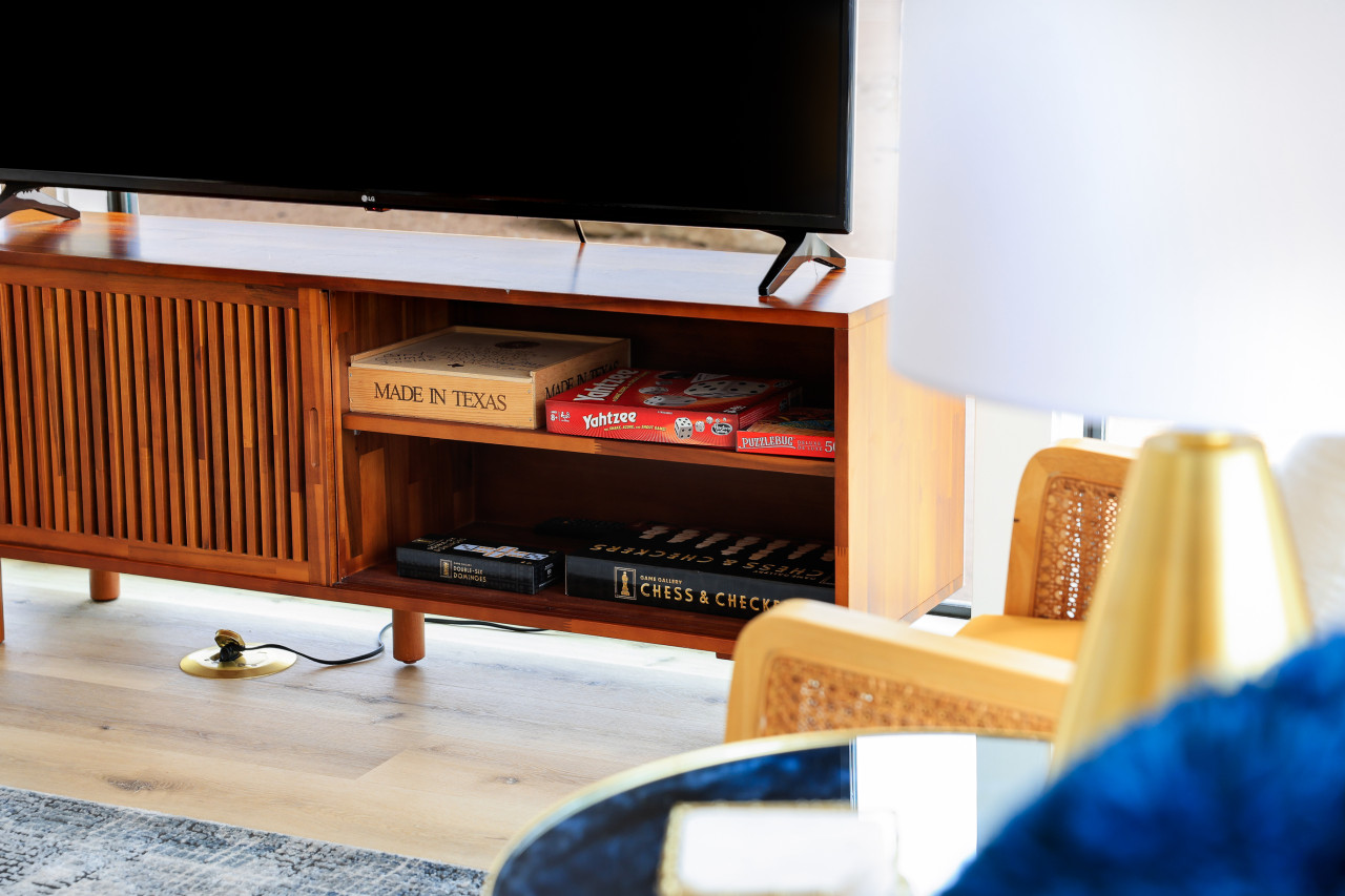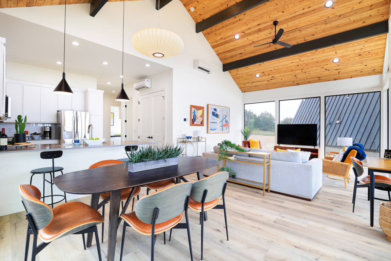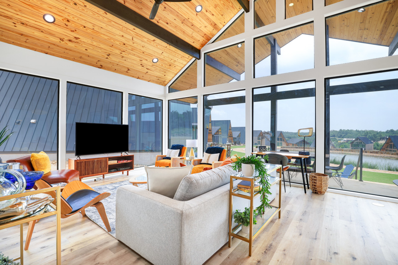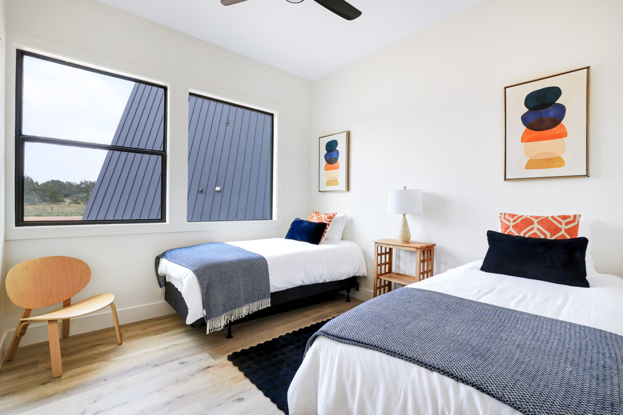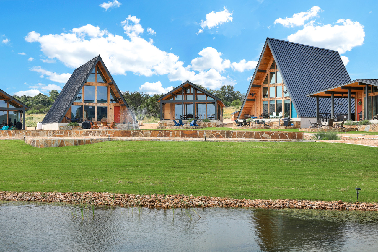 Welcome to our beautiful, newly built Cozy, Hill Country Cabin! located at Gruene Lake Ranch! Enjoy our spacious, 3-bedroom, 2-bathroom open floor plan. This cabin is perfect to accommodate family & friends for a private getaway or long-term stay. San Antonio & Austin Airports are both about an hour drive from the cabin. Enjoy local tourist spots such as Whitewater Amphitheater, Schliterban, Canyon Lake, Wurstfest, & Downtown Gruene all within 15 minutes of the property! This upscale, spacious cabin can accommodate up to 6 guests comfortably and is located in the upper lake area. This home comes equipped with everything you need, including; ceiling fans, window coverings, and a full size washer and dryer for your convenience. Bedroom 1: King size bed with an en–suite walk in shower bathroom. Bedroom 2 King size bed. Bedroom 3: Two twin beds. Guest Bathroom: Shower/tub combo perfect to bathe the little ones. Living Space & Dining: Enjoy our floor to ceiling windows with a beautiful view of our community pond and walking trail. This cabin does have a dedicated workspace area for your convenience. Enjoy our bar cart equipped with a pitcher to make some fresh margaritas or sangria. The living room comes equipped with a large smart tv and seating for up to 6 guests. The dining room has a large dining table for up to 6 guests along with 2 additional barstools for the bartop. Kitchen: Our Kitchen is fully furnished with a gas stove top, pots & pans, baking sheets, blender, drip coffee maker, toaster, and all basic cooking utensils. Exterior areas: The cabin is located directly in front of a pond surrounded by a walking trail. Enjoy our private bonfire area with seating for up to 4. Located just outside the cabin is a private dining area with seating for up to 6 guests. Guests may enjoy feeding and visiting our very own Gruene Lake Ranch cattle. COMING SOON: This summer guest can enjoy the resort amenities such as the pool, restaurant, wine bar, event center & so much more! Parking: Located behind the back of the cabin. This is gravel parking. Construction: Guest access is currently limited throughout the resort as it is still under construction. Additional Information: -Uber/Lyft is Available -We do offer cleaning services during your stay for an additional cost. -We do not provide the wood for the fire pit, but it is readily available at nearby grocery stores and gas stations. -Resort amenities will be available Late 2026. Please confirm before booking if amenities will be available during your stay. -There will be active construction during your stay as the resort is being completed. This may cause noise during the day. Please avoid the construction areas. This Cabin is located in the Texas Hill Country area. That being said, guests may encounter wildlife throughout the community. We do not perform preventive pest control so guests may encounter several types of insects, bugs etc.. To help minimize any issues with pest, guest must help with keeping the doors closed at all times, disposing of food property, and cleaning up after themselves during their stay. We do not provide any refunds due to any pest or wildlife issues. Nearby Activities: Whitewater Amphitheater - 3.7 Miles Gruene Hall - 7 Miles Heb Plus - 8.2 Miles Buc-ee’s - 8.2 Miles Wurstfest - 10 Miles Schlitterbahn - 10.2 Miles San Marcos Outlets - 15 Miles Canyon Lake - 16 Miles River Walk - 42 miles San Antonio Airport - 43 Miles Downtown Austin - 50 Miles Austin Airport - 50 Miles