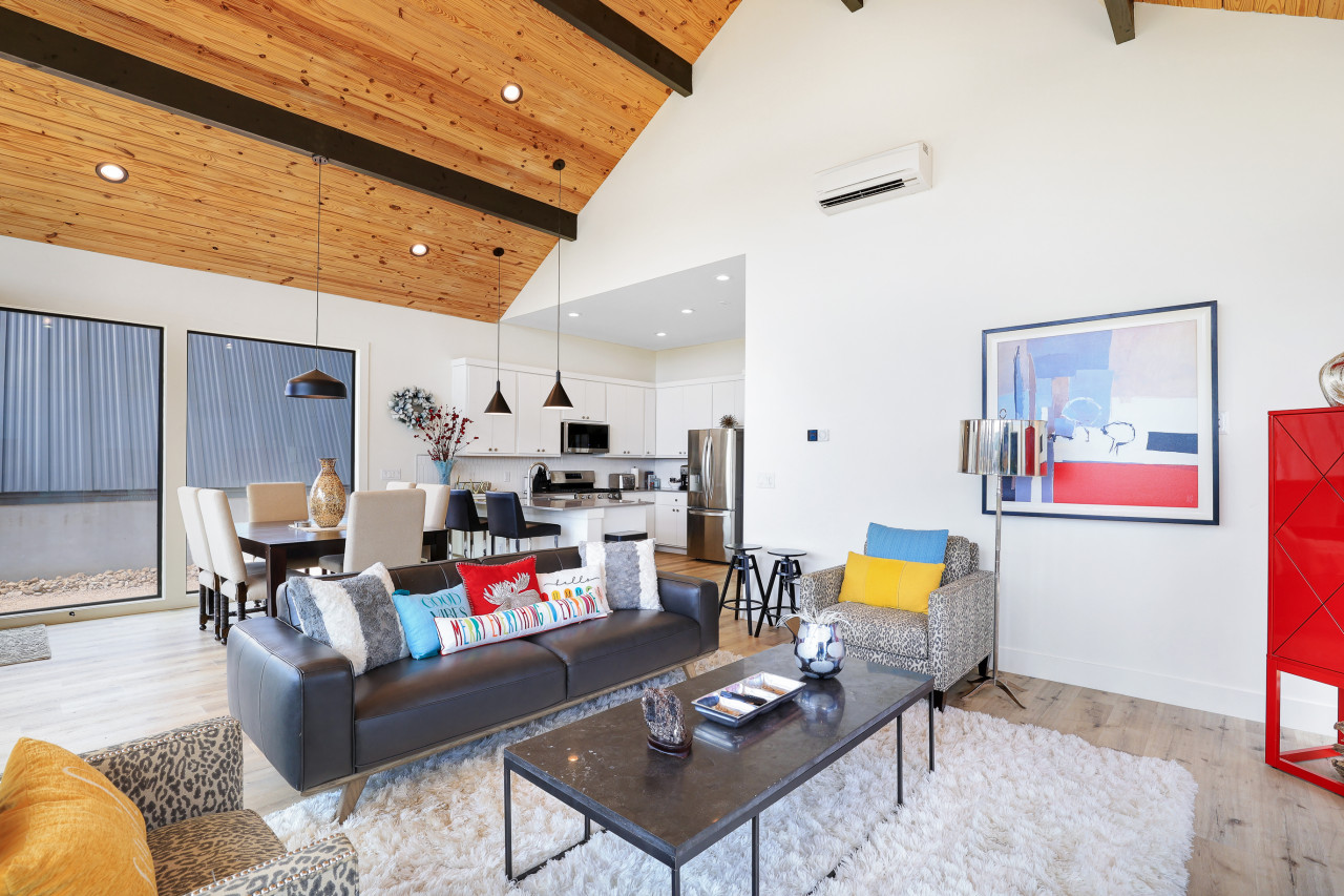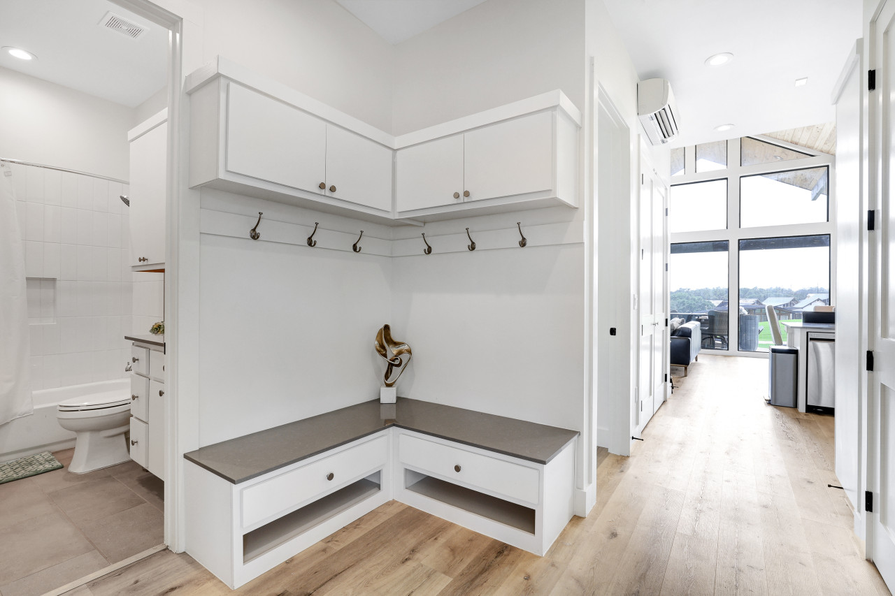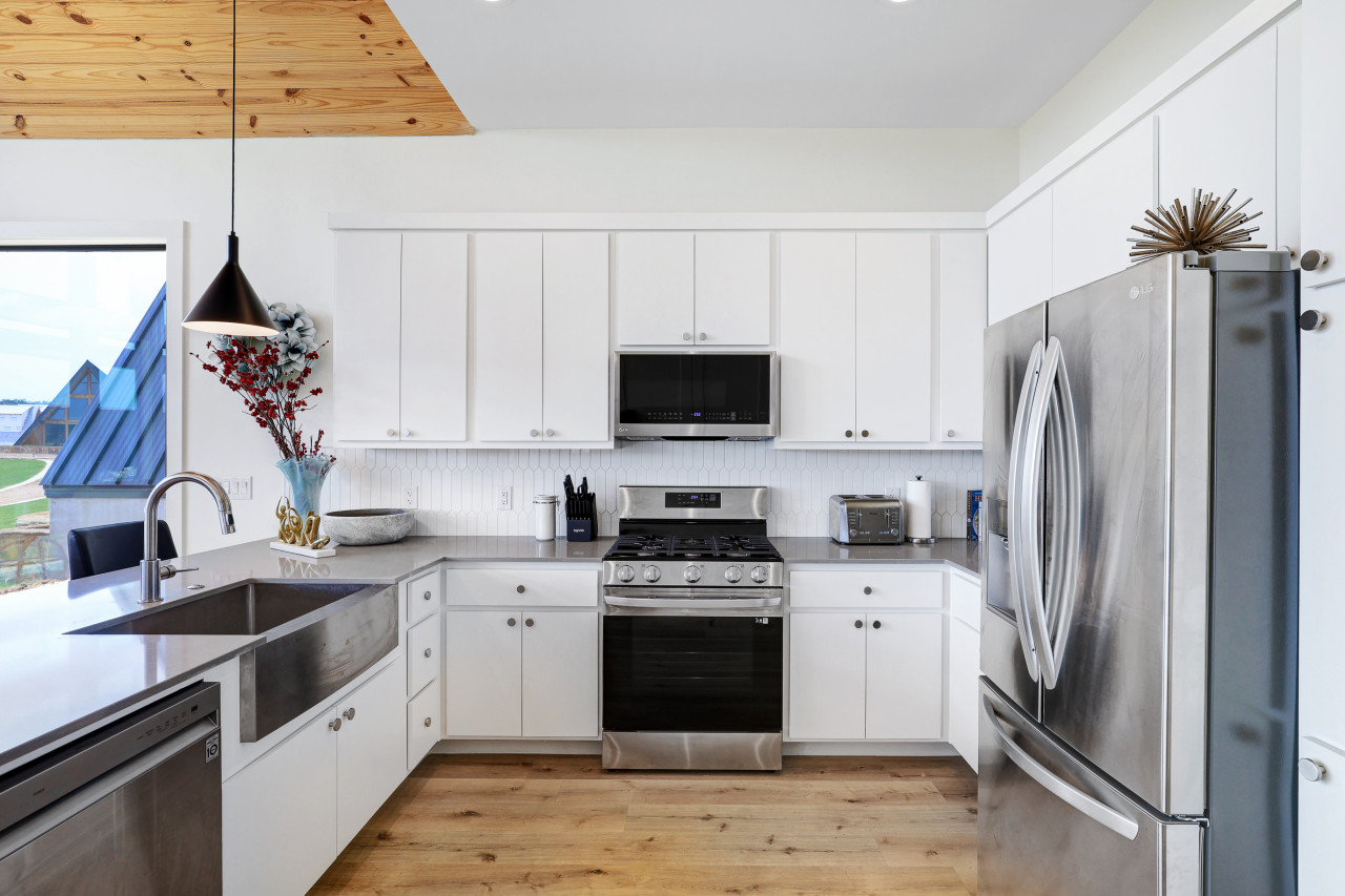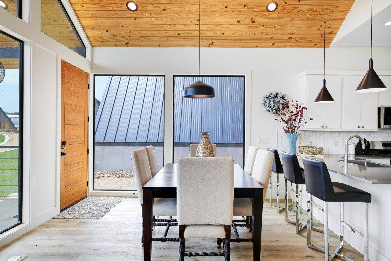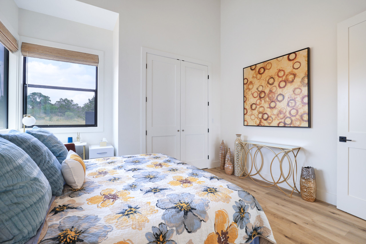 Welcome to our beautiful, newly built Private, Waterfront Escape located at Gruene Lake Ranch! Enjoy our spacious, 3-bedroom, 2-bathroom open floor plan. This cabin is perfect to accommodate family & friends for a private getaway or long-term stay. San Antonio & Austin Airports are both about an hour drive from the cabin. Enjoy local tourist spots such as Whitewater Amphitheater, Schliterban, Canyon Lake, Wurstfest, & Downtown Gruene all within 15 minutes of the property! This upscale, spacious cabin can accommodate up to 6 guests comfortably and is located in the upper lake area. This home comes equipped with everything you need, including; ceiling fans, window coverings, and a full size washer and dryer for your convenience. Bedroom 1: King size bed with an en–suite walk in shower bathroom. Bedroom 2: Queen size bed. Bedroom 3: Two Full Bunk Beds (4Bd's). Guest Bathroom: Shower/tub combo perfect to bathe the little ones. Living Space & Dining: Enjoy our floor to ceiling windows with a beautiful view of our community pond and walking trail. This cabin does have a dedicated workspace area for your convenience. Enjoy our bar cart equipped with a pitcher to make some fresh margaritas or sangria. The living room comes equipped with a large smart tv and seating for up to 6 guests. The dining room has a large dining table for up to 6 guests along with 2 additional barstools for the bartop. Kitchen: Our Kitchen is fully furnished with a gas stove top, pots & pans, baking sheets, blender, drip coffee maker, toaster, and all basic cooking utensils. Exterior areas: The cabin is located directly in front of a pond surrounded by a walking trail. Enjoy our private bonfire area with seating for up to 4. Located just outside the cabin is a private dining area with seating for up to 6 guests. Guests may enjoy feeding and visiting our very own Gruene Lake Ranch cattle. COMING SOON: This summer guest can enjoy the resort amenities such as the pool, restaurant, bar, event center & so much more! Parking: Located behind the back of the cabin. This is gravel parking. Construction: Guest access is currently limited throughout the resort as it is still under construction. Additional Information: -Uber/Lyft is Available -We do offer cleaning services during your stay for an additional cost. -We do not provide the wood for the fire pit, but it is readily available at nearby grocery stores and gas stations. -Resort amenities will be available Late 2026. Please confirm before booking if amenities will be available during your stay. -There will be active construction during your stay as the resort is being completed. This may cause noise during the day. Please avoid the construction areas. This Cabin is located in the Texas Hill Country area. That being said, guests may encounter wildlife throughout the community. We do not perform preventive pest control so guests may encounter several types of insects, bugs etc.. To help minimize any issues with pest, guest must help with keeping the doors closed at all times, disposing of food property, and cleaning up after themselves during their stay. We do not provide any refunds due to any pest or wildlife issues. Nearby Activities: Whitewater Amphitheater - 3.7 Miles Gruene Hall - 7 Miles Heb Plus - 8.2 Miles Buc-ee’s - 8.2 Miles Wurstfest - 10 Miles Schlitterbahn - 10.2 Miles San Marcos Outlets - 15 Miles Canyon Lake - 16 Miles River Walk - 42 miles San Antonio Airport - 43 Miles Downtown Austin - 50 Miles Austin Airport - 50 Miles